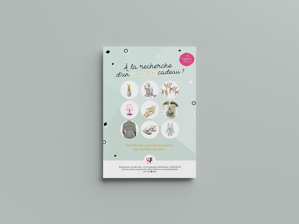 Wonderfriends est une boutique située dans le centre de Charleroi depuis 2011. Pour les fêtes de fin d'année la boutique à voulu réaliser une Page publicitaire pour le magasine ELLE. L'idée était de mettre en avant leurs produits du moment.